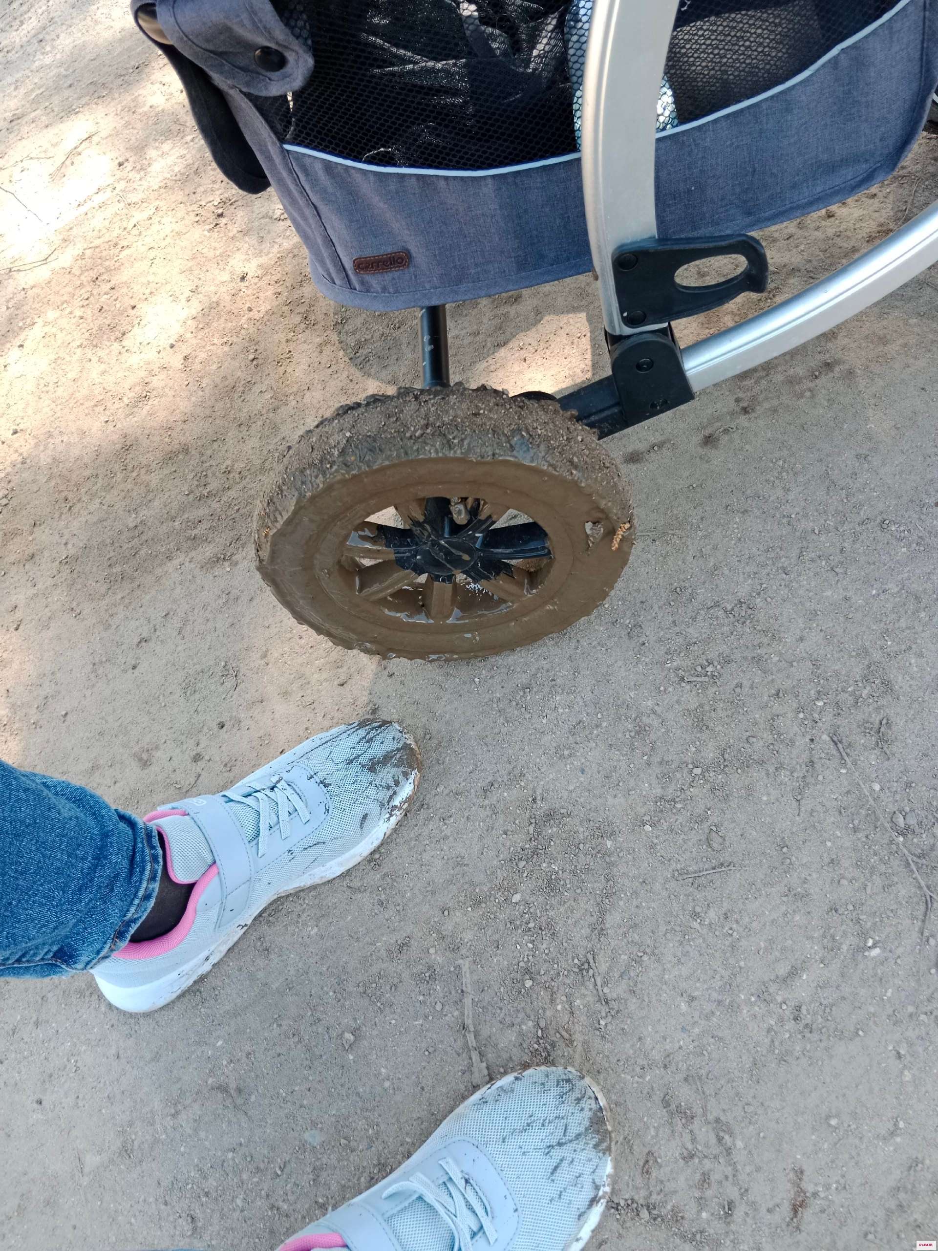 Коляску стаскивает в ямы.