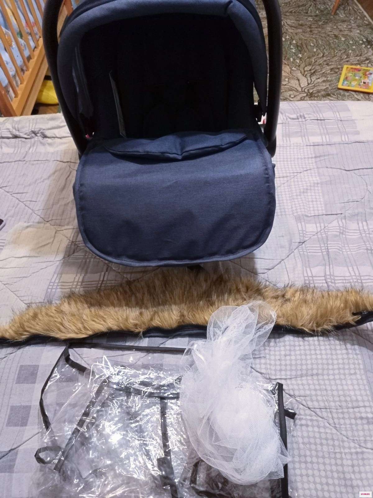 Блок 2в1 ( прогулочный блок и люлька), автолюлька, варежки, подстаканник, москитная сетка на автолюльку, дождевик, зимний козырёк, сумка.
