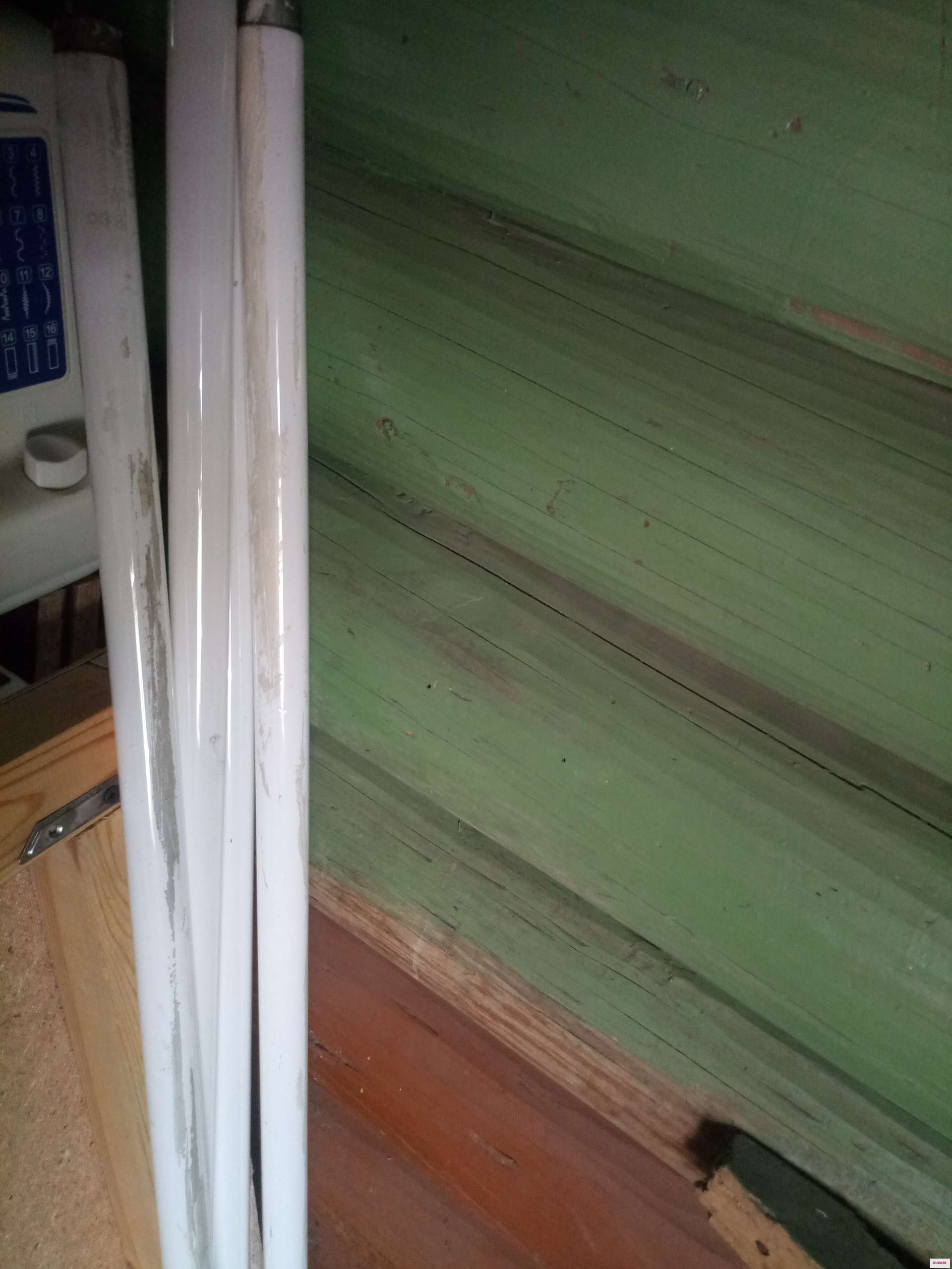 Четыре лампы дневного света, 36 ватт, ну как раньше сороковки были. Две немного испачканы белой краской. Когда заменяла на светодиоды, были рабочие. Сейчас - не знаю, проверить никак, ламп уже нет. А то выброшу. Хотя их нельзя выбрасывать, а куда девать?