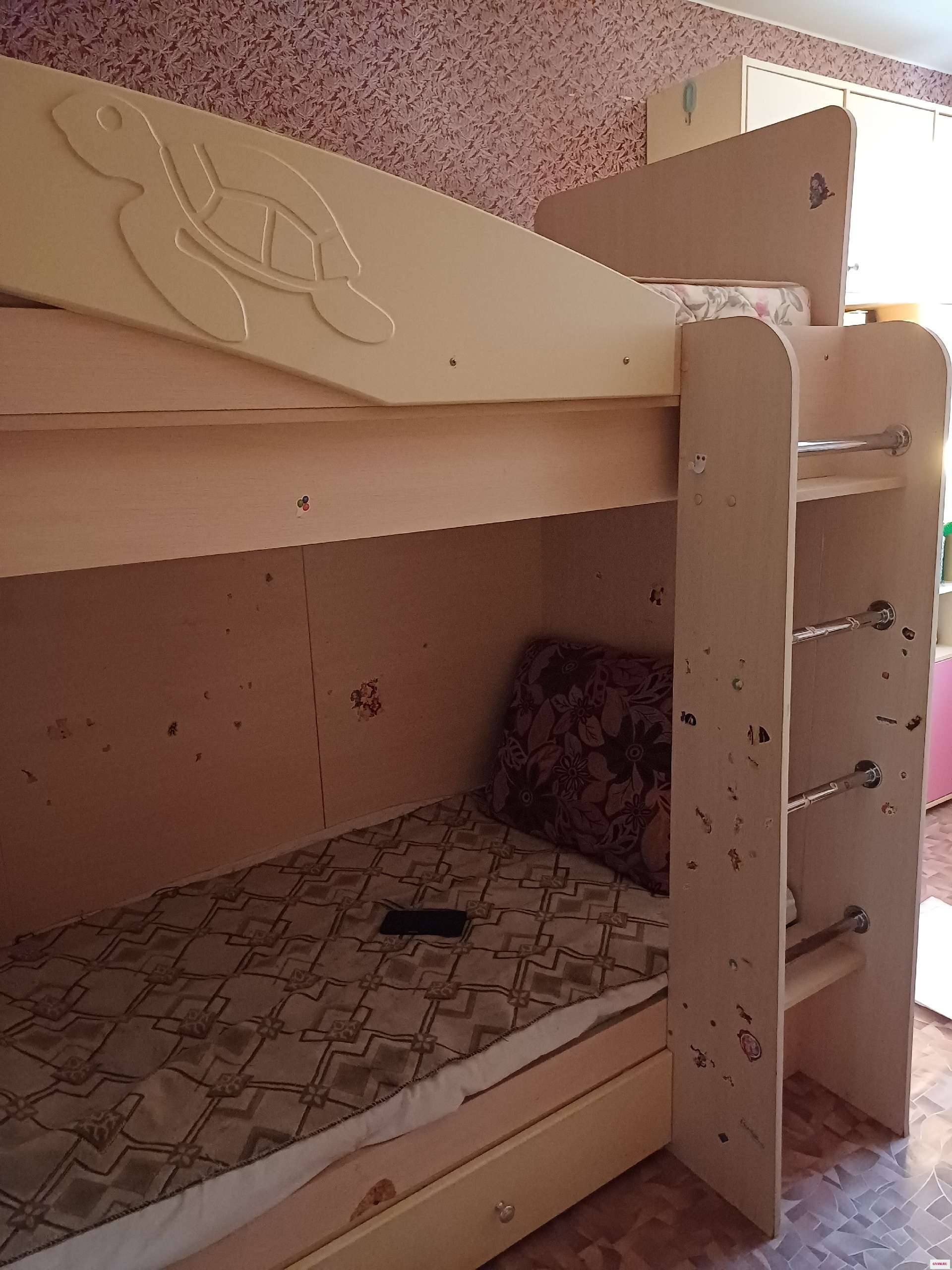 Продам кровать 2этажа, 2 спальных места, с матрасами, размер 200×100см, два вместительных ящика. Цена 3000руб. Есть небольшие дефекты, на фото видно. Самовывоз. Все вопросы в ЛС или по телефону 89605318078
