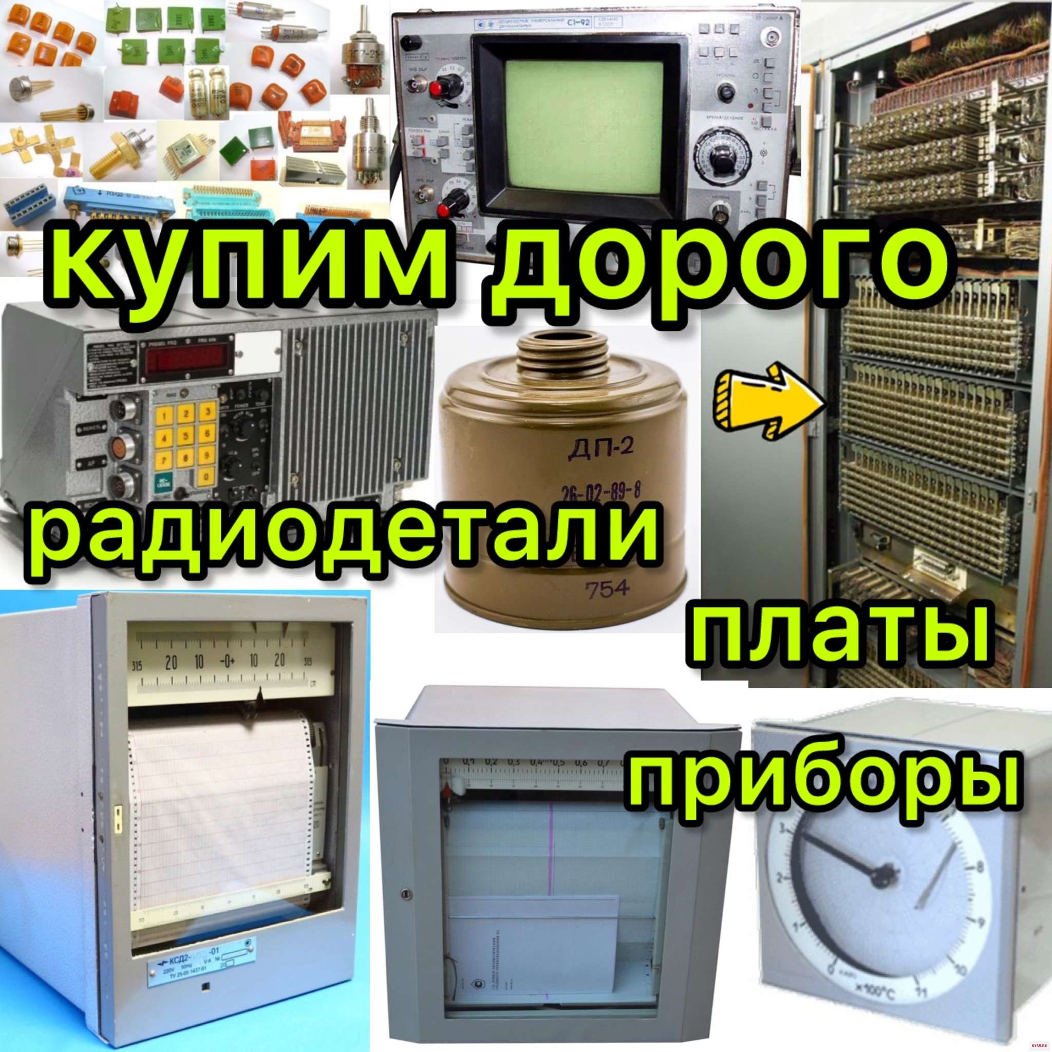 ‼КУПИМ ДОРОГО‼ СОВЕТСКИЕ РАДИОДЕТАЛИ, ПЛАТЫ, ИЗМЕРИТЕЛЬНЫЕ ПРИБОРЫ, АВТОМОБИЛЬНЫЕ катализаторы. Предметы старины ( статуэтки, иконы, сабли-кинжалы, столовое и др. серебро, граммофоны, книги царских времен и многое др. ). Радиостанции, рации, Осциллографы, частотомеры, генераторы частоты, анализаторы, Термопары ТПП, ТПР, РЕДКОЗЕМЕЛЬНЫЕ МЕТАЛЛЫ, регистрирующие приборы КСП, КСМ. ., Самописцы, КИПиА, списанные авиационные блоки, Электроника, ЭВМ, гироскопы, РЕОХОРДЫ, советские АТС, блоки МКС, конденсаторы КМ, лампы, транзисторы, переключатели, тумблеры, микросхемы, разъемы, контакторы, потенциометры, КОНТАКТЫ с ПУСКАТЕЛЕЙ, Техническое и другое СЕРЕБРО, патроны для противогазов ДП-2, . Дп-4, Дон-2, Фг-120, аккумуляторы СЦ, СЦС. . и тд, срезка с плат, корпуса и браслеты с желтых советских наручных часов. ( Телевизоры, магнитофоны, радио - НЕ БЕРЕМ ). ВЫЕЗД в РАЙОНЫ и по СТРАНЕ. . +79186633633 (Быстрый ответ - Ватсап или Вайбер)
