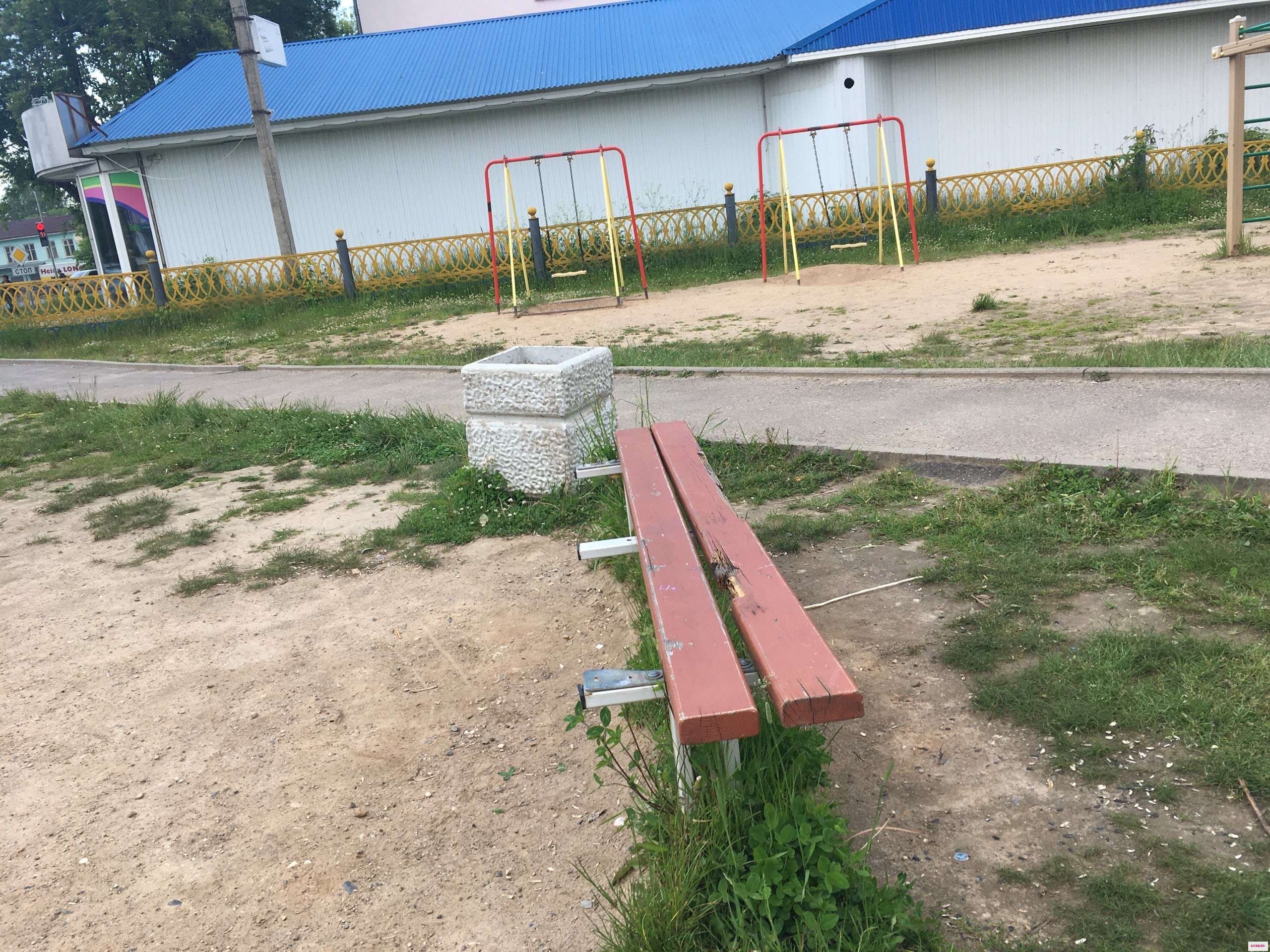 Гвозди торчат, лавки выдраны.