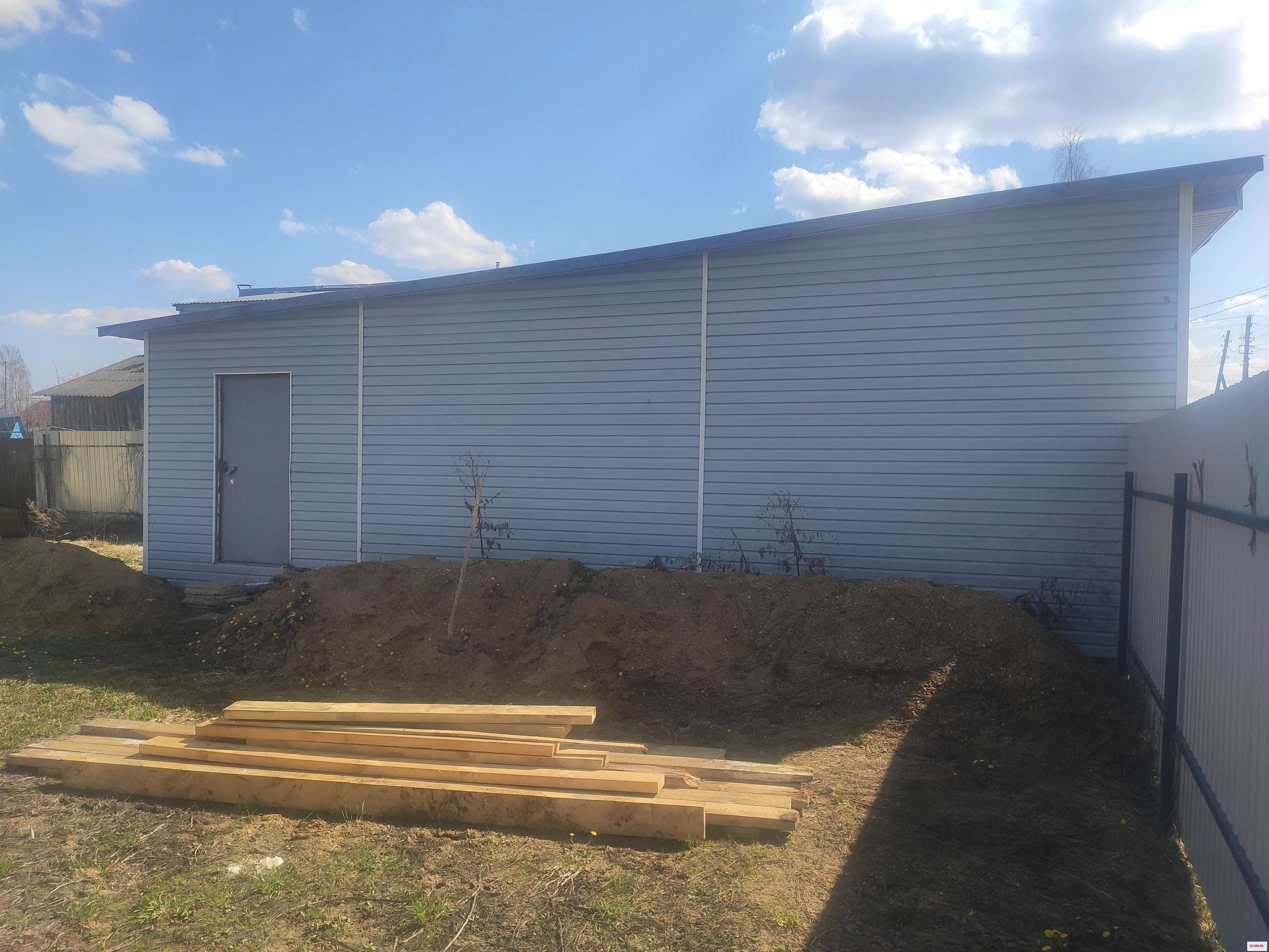 1). Гараж из пеноблоков обшитый сайдингом, размер 6, 2* 8 м, высота ворот 2, 8 м;