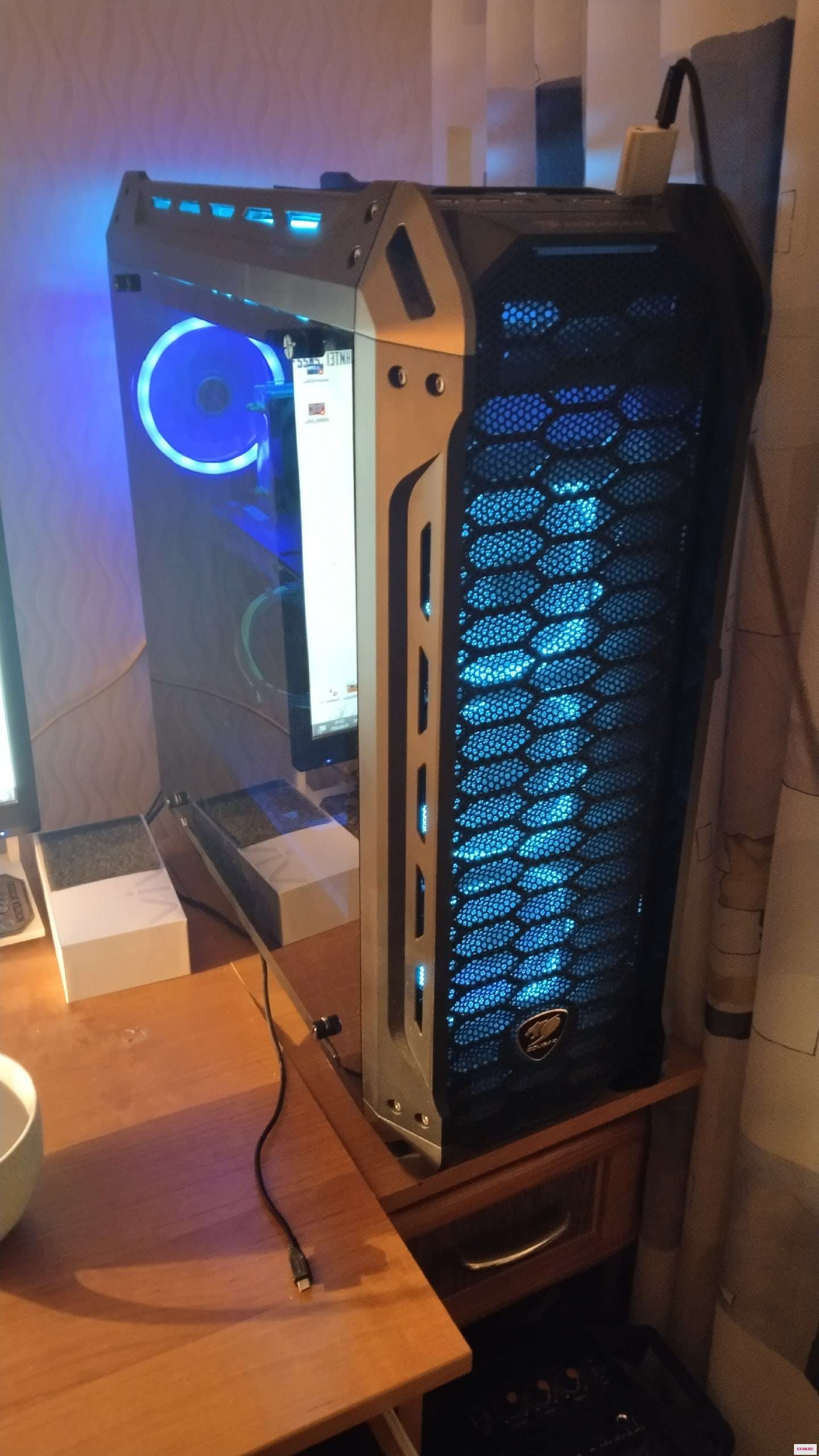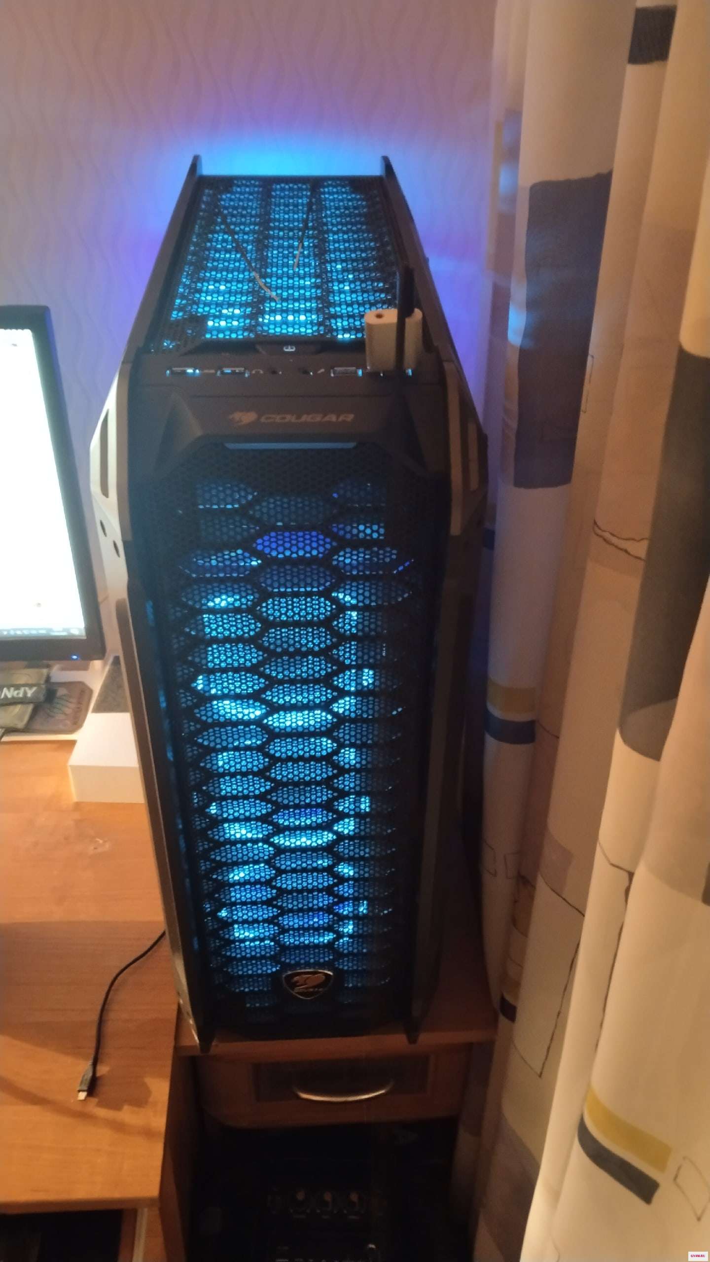 - Корпус Cougar Panzer-S, фактор Midi Tower. В корпус установлено 8 кулеров ( люблю холодные сборки). Покупал для его на будущее, но жизненная ситуация изменилась.