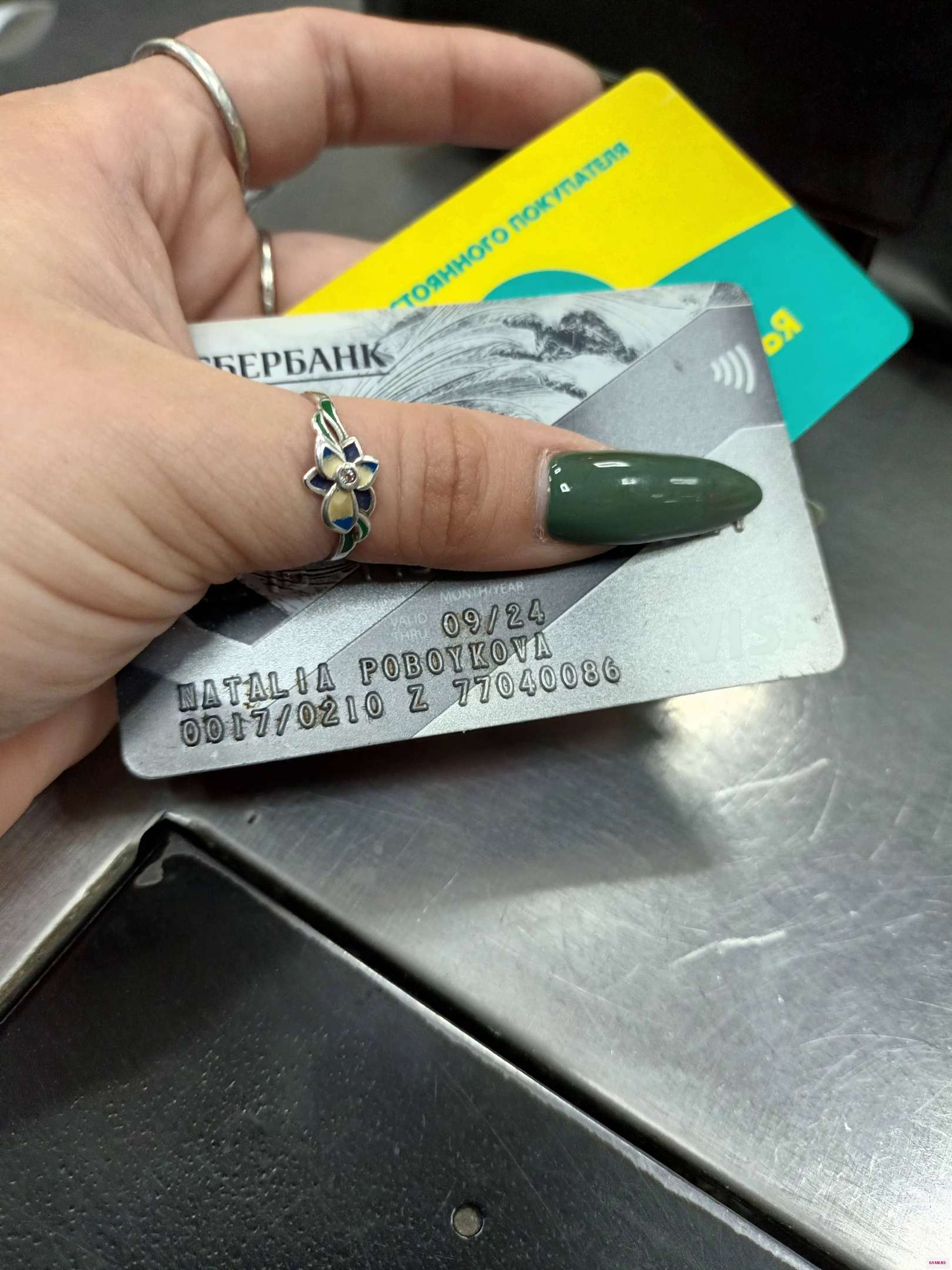На кассе Магнит на улице Седова 27 была оставлена карта на имя Наталии Побойковой.