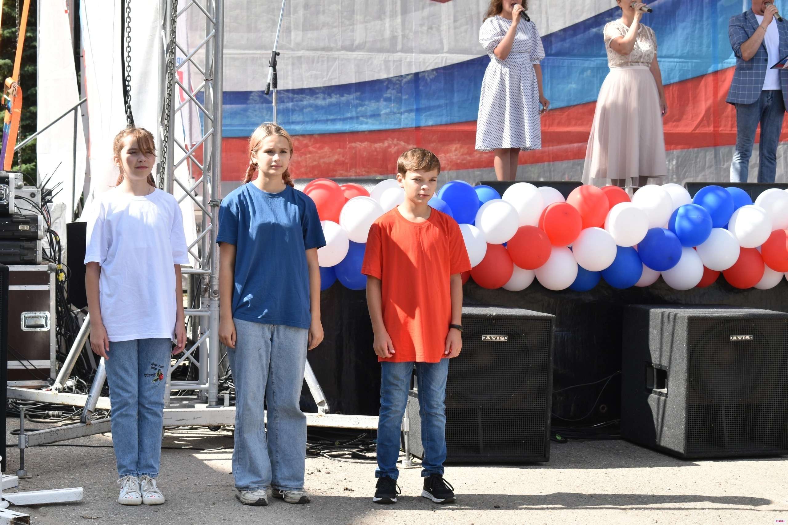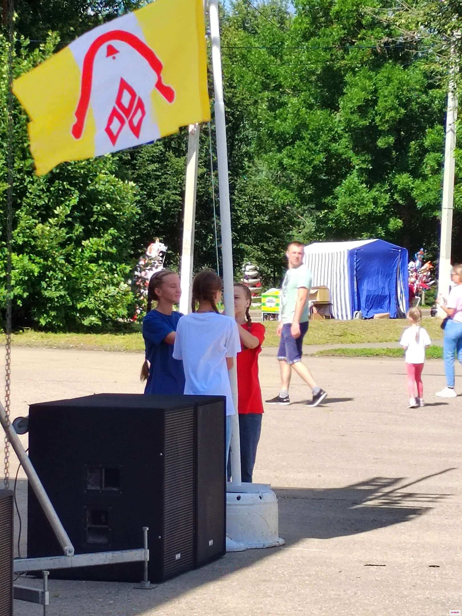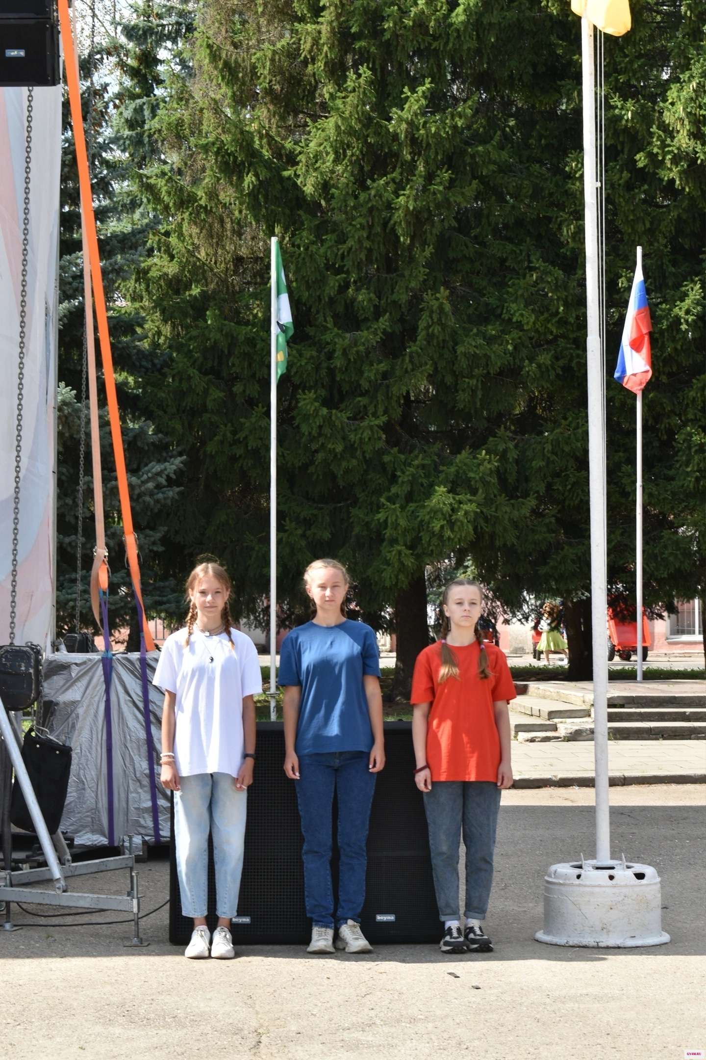 Флаги района и города, реют у главной сцены города!