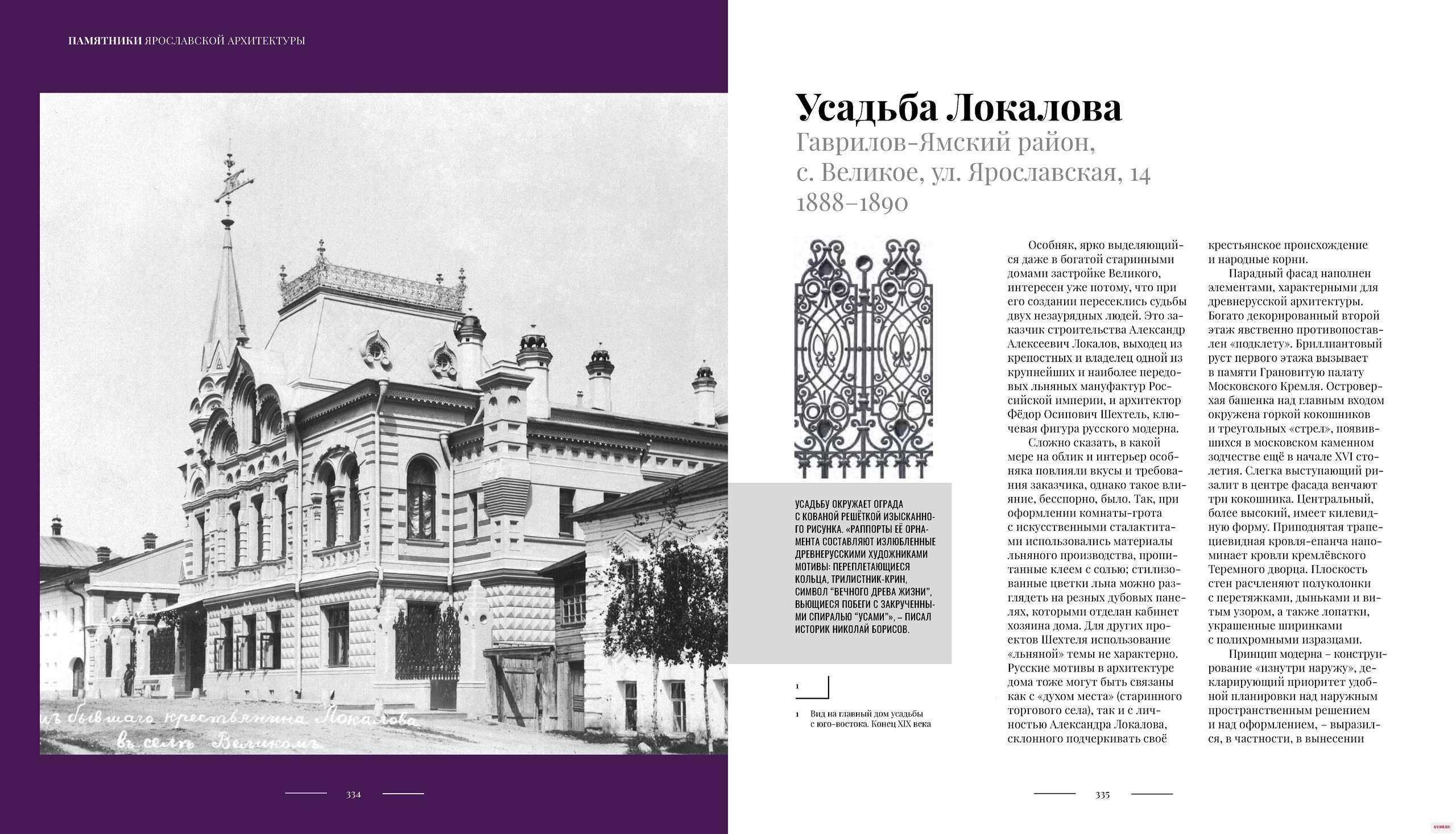 «Особняк, ярко выделяющийся даже в богатой старинными домами застройке Великого, интересен уже потому, что при его создании пересеклись судьбы двух незаурядных людей. Это заказчик строительства Александр Алексеевич Локалов, выходец из крепостных и владелец одной из крупнейших и наиболее передовых льняных мануфактур Российской империи, и архитектор Фёдор Осипович Шехтель, ключевая фигура русского модерна.