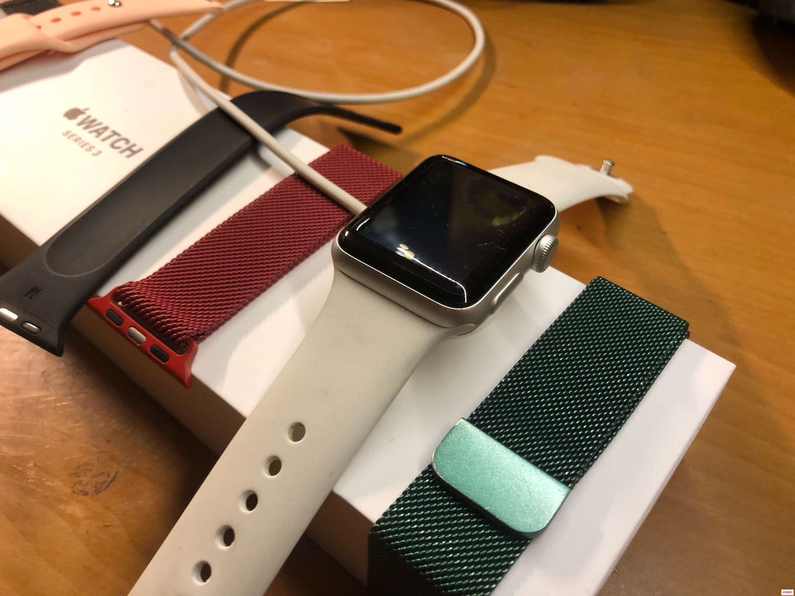 Apple Watch Series 3 оригинал, отвяжу при вас, минимальные следы использования (потертости на экране). Заряд держат 1. 5-2 дня, в зависимости от активности использования .