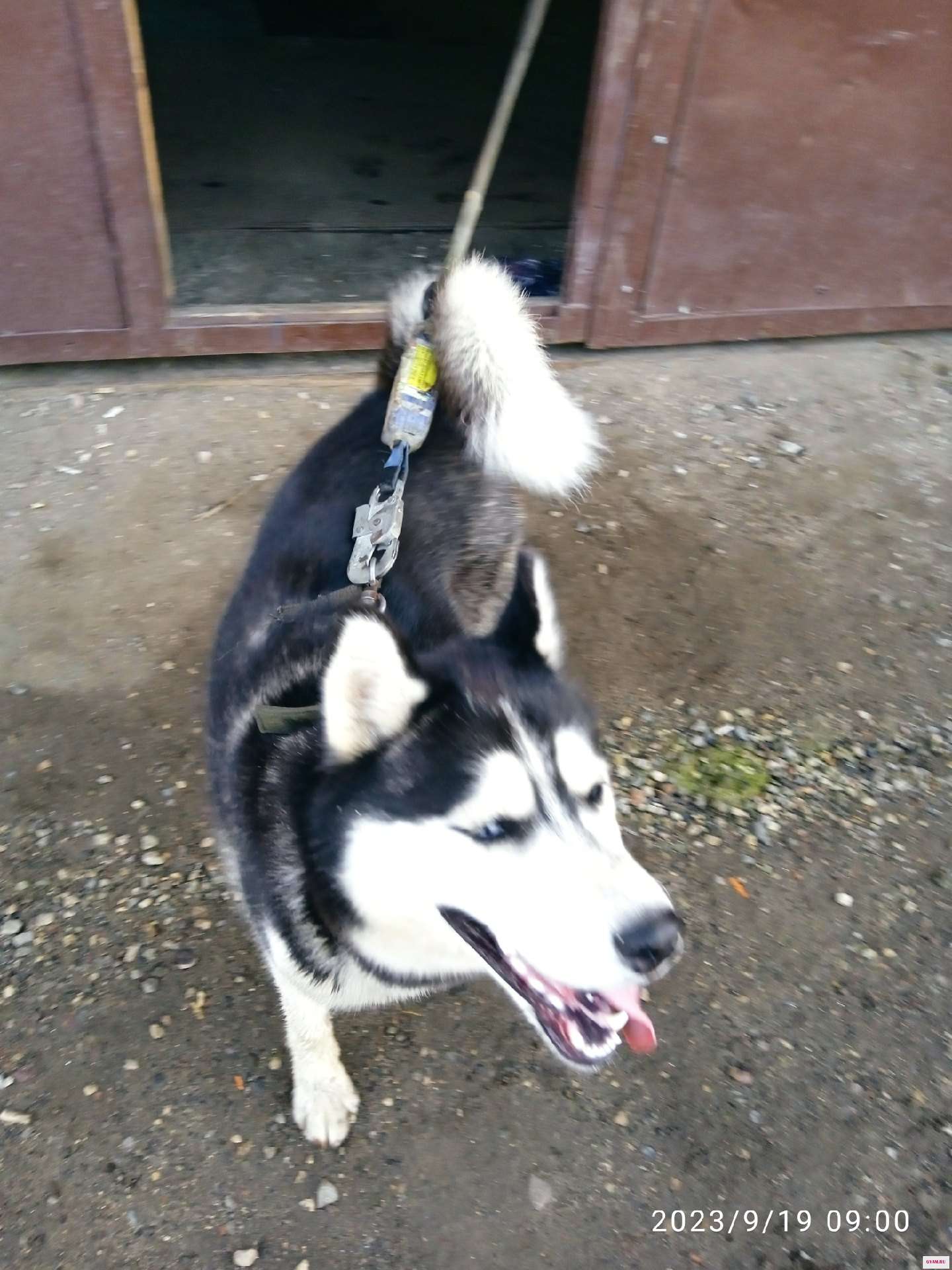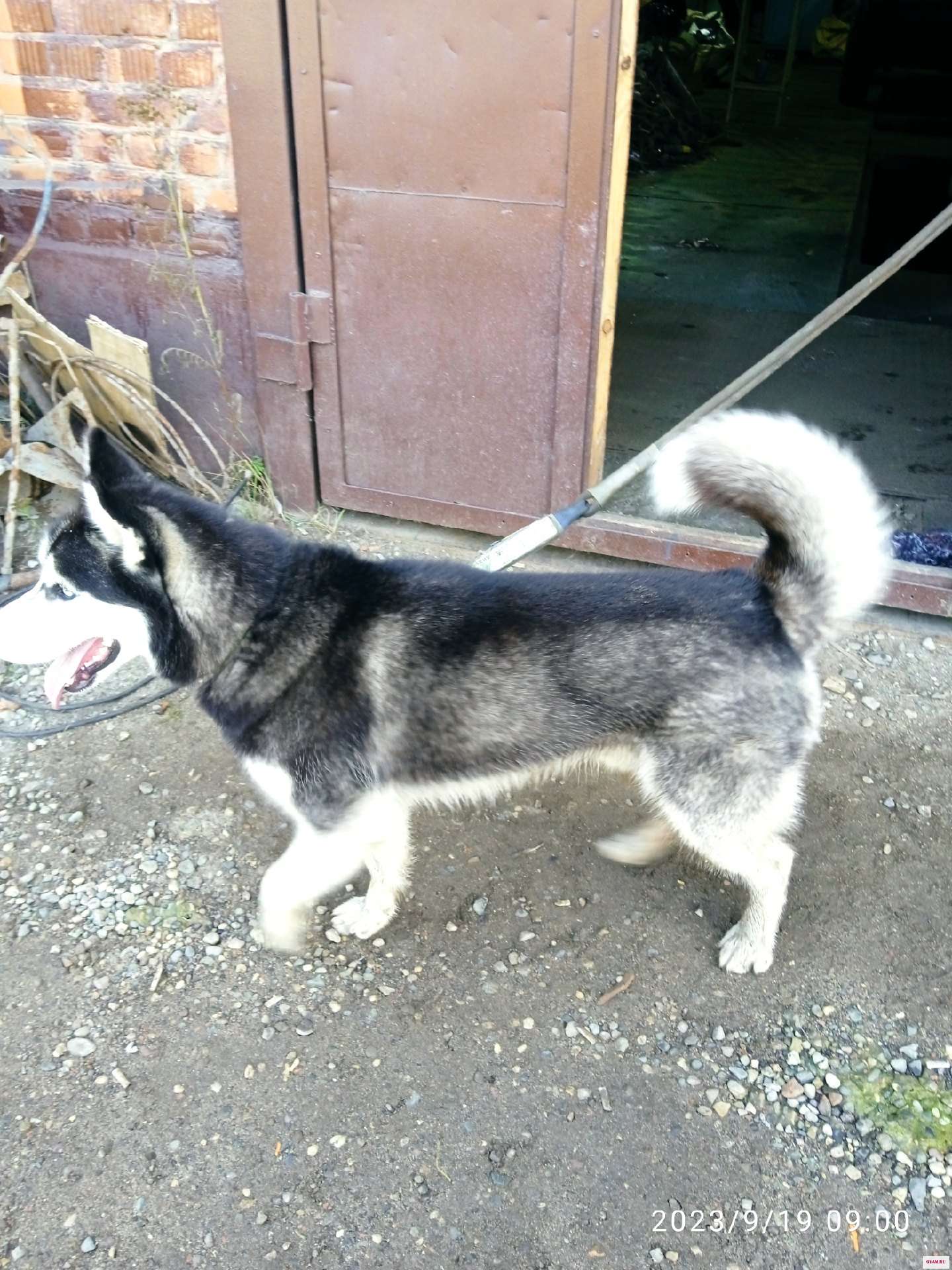 Кобель, с ошейником и карабином. .