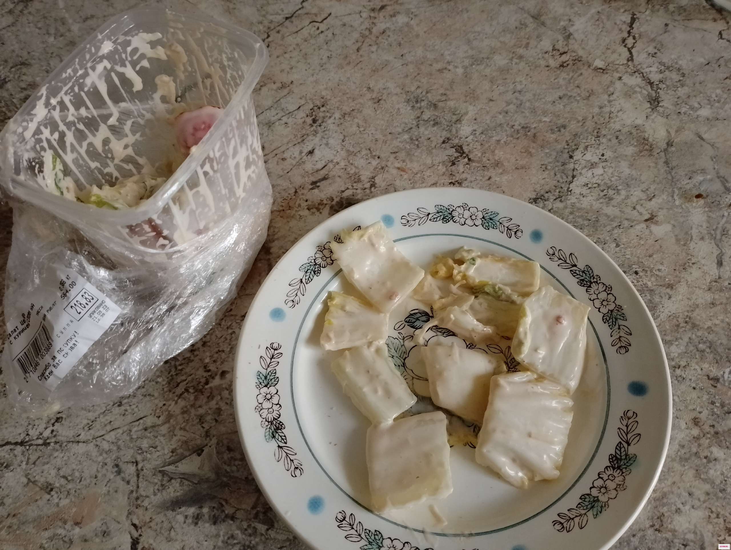 В салате Цезарь ни одного листа салата, только одни стебли огромные, 2 кусочка курицы и 4 дольки помидора и много много майонеза!