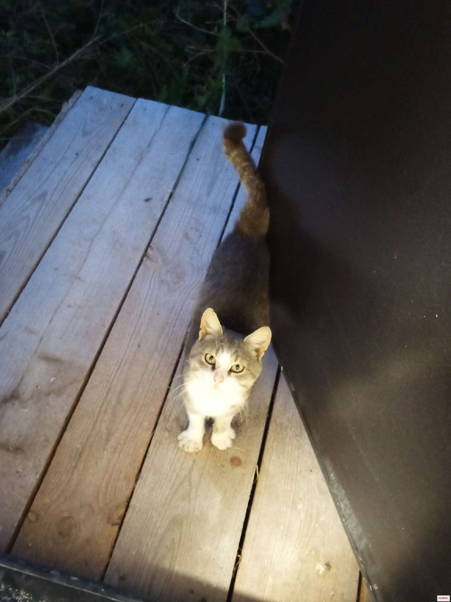 возраст примернр 8-9 мес, сидит у нашего дома уже пару дней, очень ласковый, и немного пугливый.