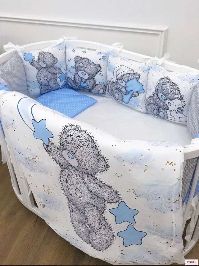 Продам набор 17 предметов: бортики подушки 12 шт 30*30; одеяло с пододеяльником 80*100 ; подушка с наволочкой 30*40; универсальная простыня на резинке. 1 500
