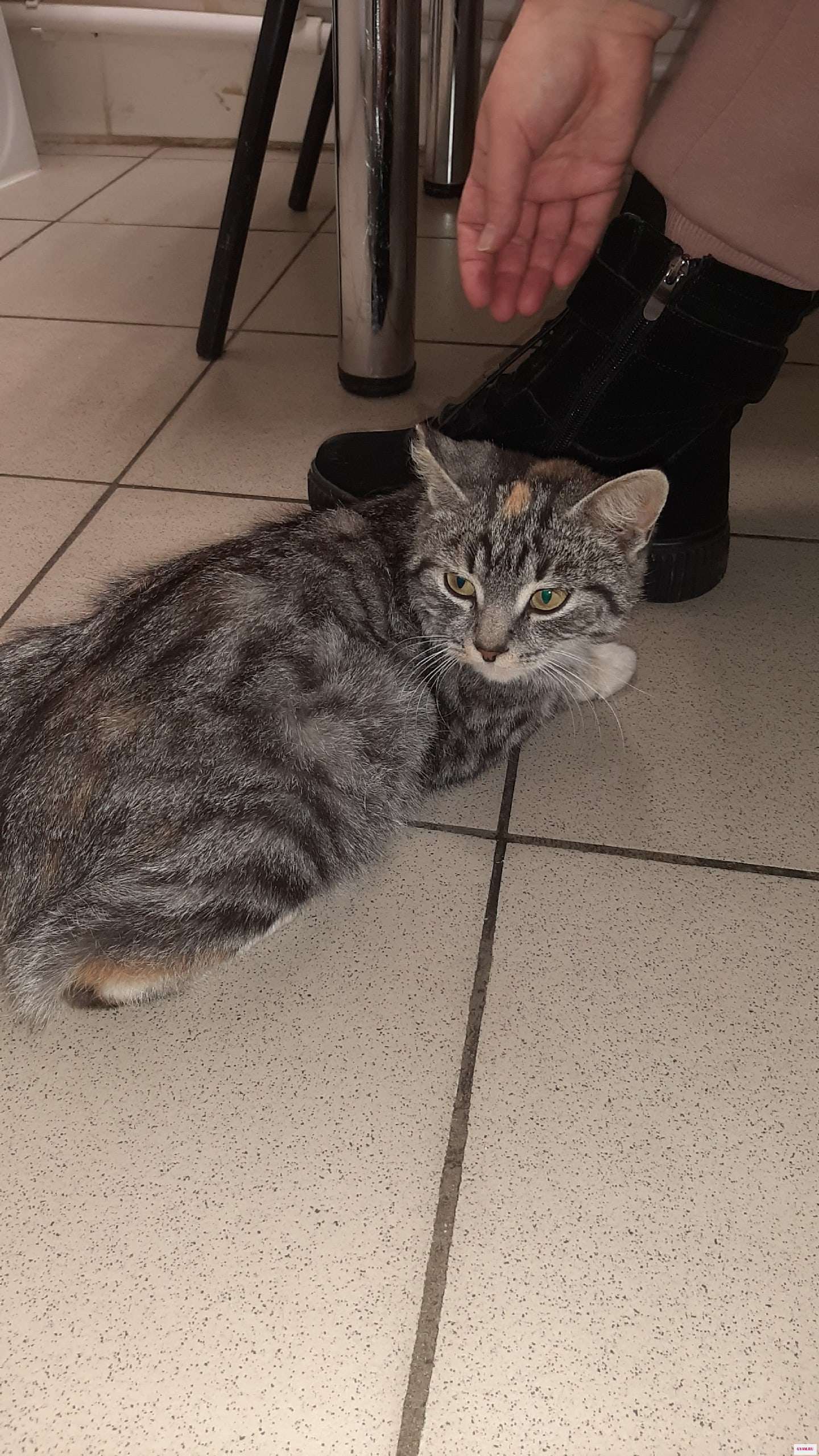 Найдена кошечка, прибилась к магазину "Пятерочка" на ул. Комарова 8А. Кошечка замерзает, кому было не жалко выкинуть ее в такой мороз.