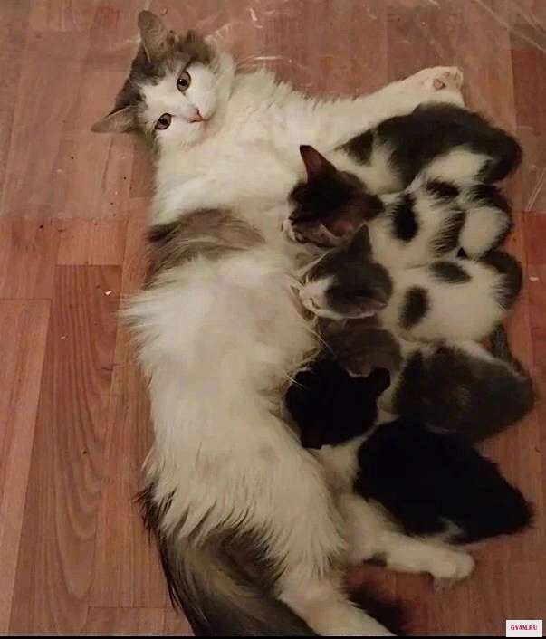 Кошку и пять её малышек забрала к себе домой добрая фея.