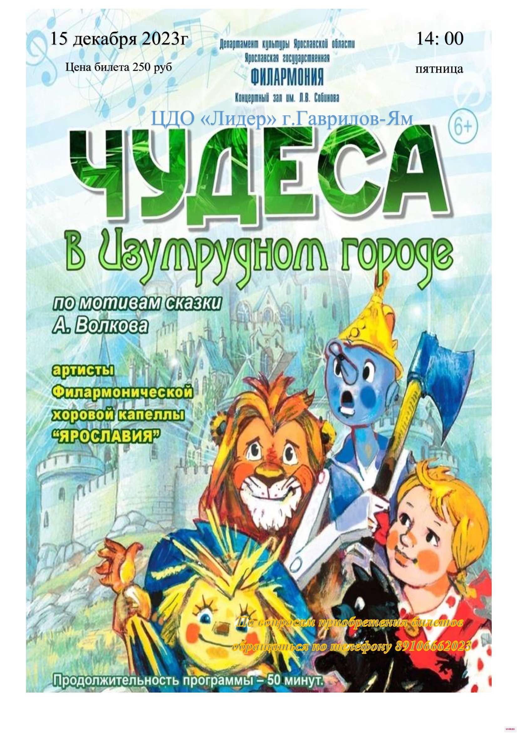 Изменения в программе. 15 декабря в концертном зале ЦДО "Лидер" будет представлена музыкальная сказка "Чудеса в Изумрудном городе".