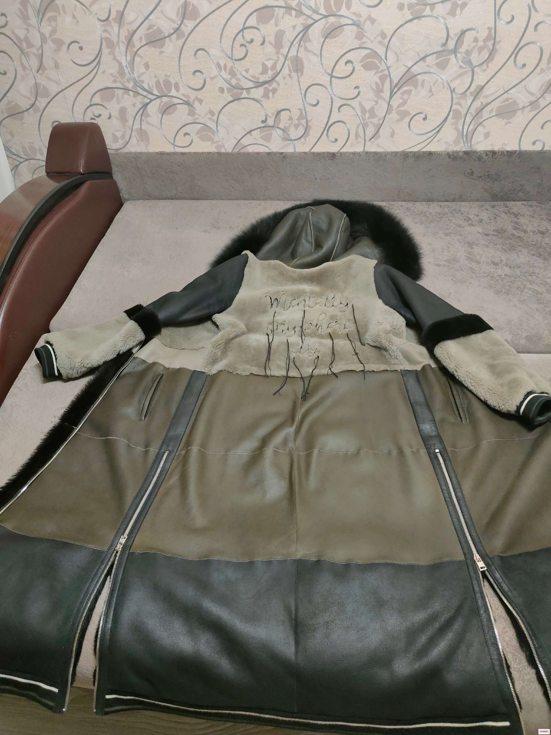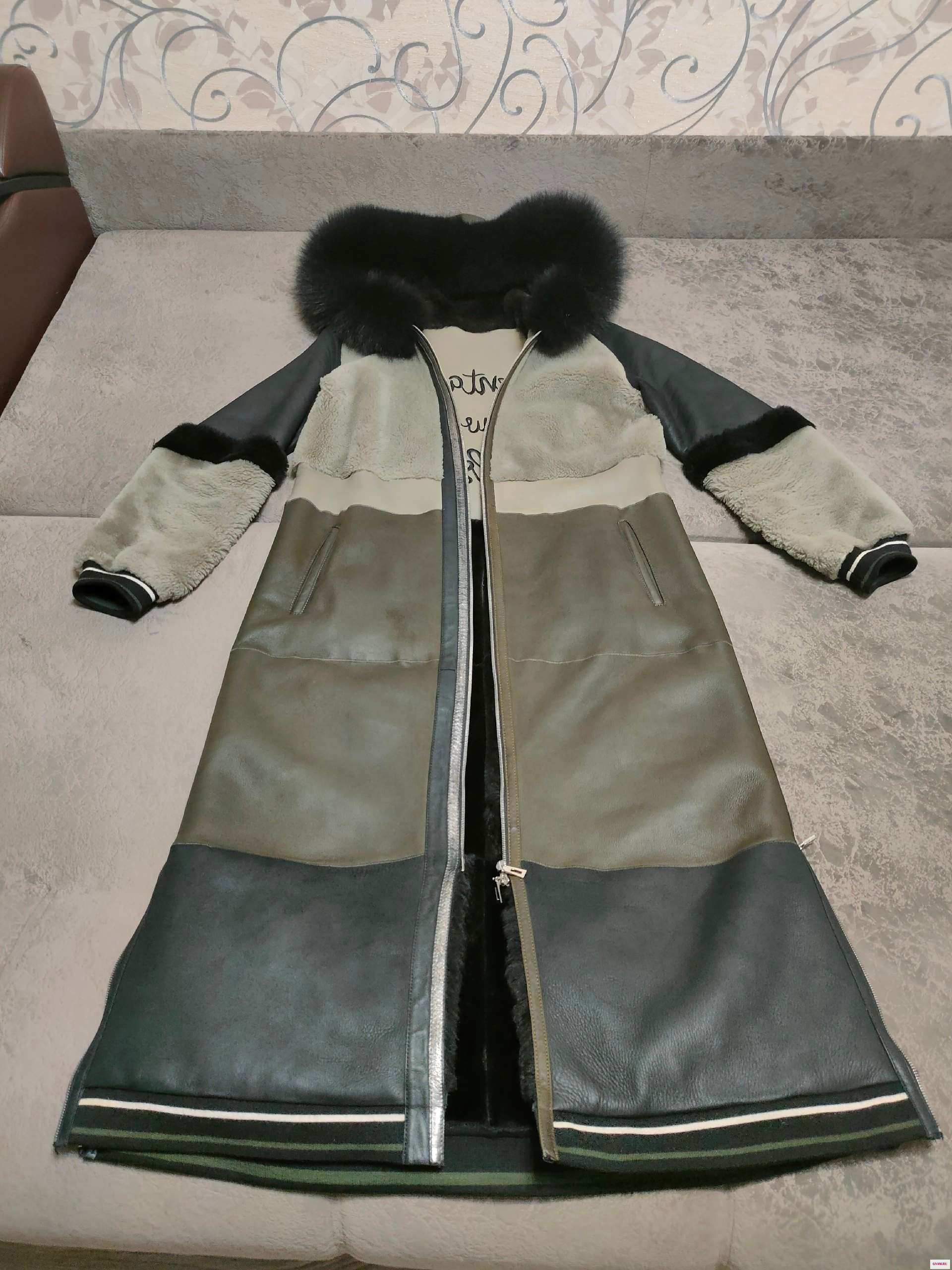 Продаются немного бу 1)натуральная коричневая дублёнка (48 размер, если переставить пуговицы, размер будет больше/ меньше, так как крой изделия: пуговицы не по середине), длина 111 см - цена 9000.