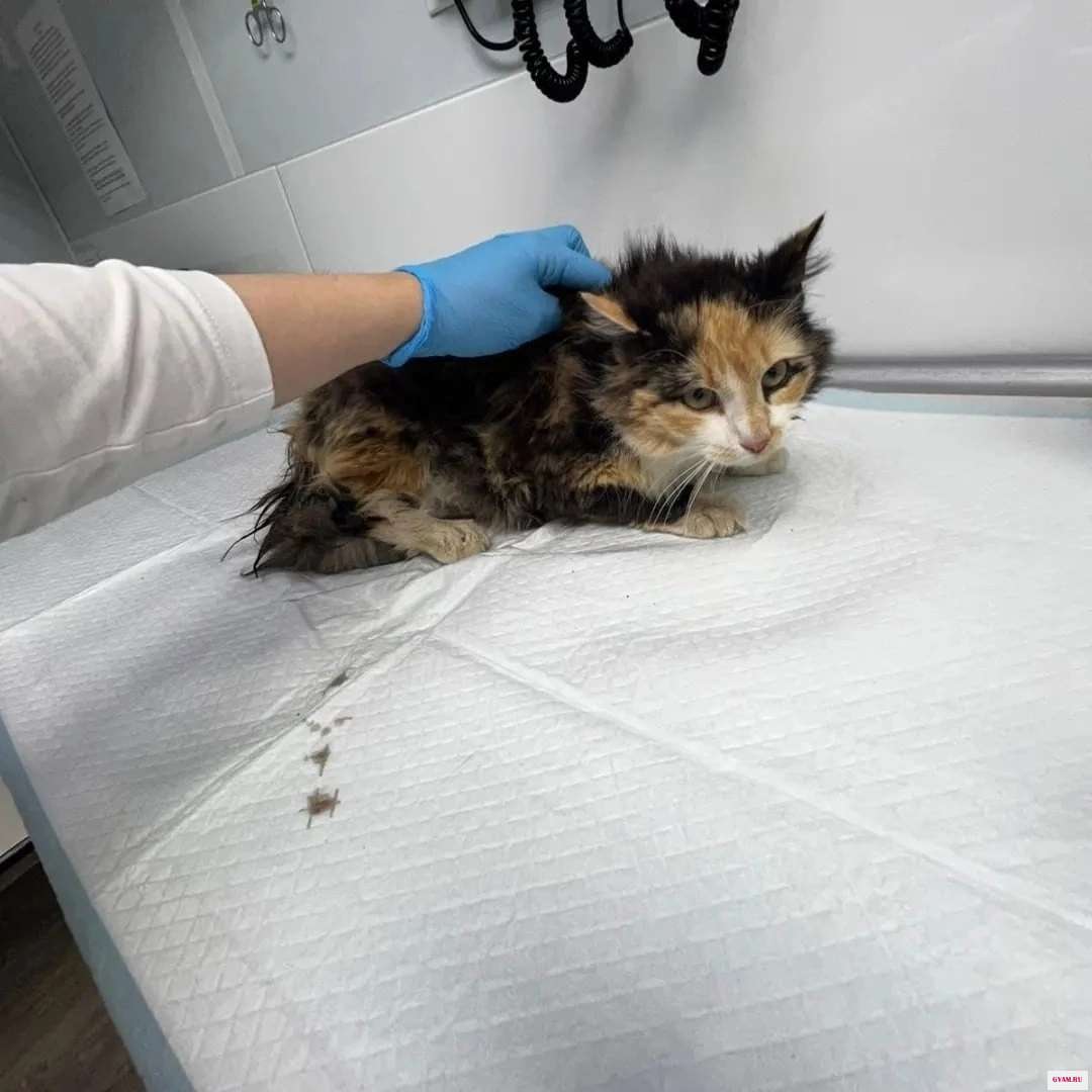 Нашли вчера днем, лежала вдоль обочины, скорее всего домашняя, совсем не похожа на бездомыша, а их мы повидали не мало. Скорее всего попала под машину, может быть выпала из окна. Стало жалко её, отвезли в ветеринарную клинику, по другому поступить не смогли, оставлять в таком состоянии на улице жестоко, первая встречная собака и нет кошки, даже убежать бы не смогла. Кошечке диагностировали травму позвоночника и ушибы внутренних органов. Оказали первую помощь!