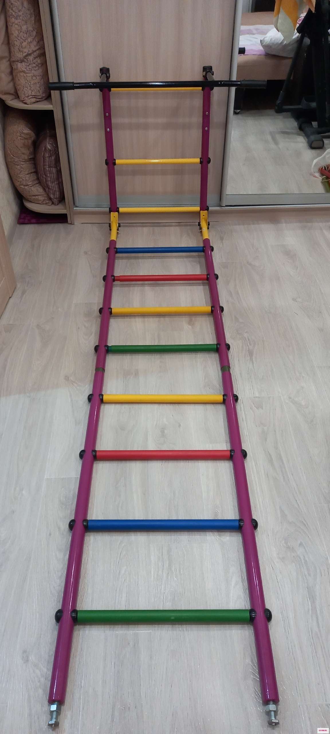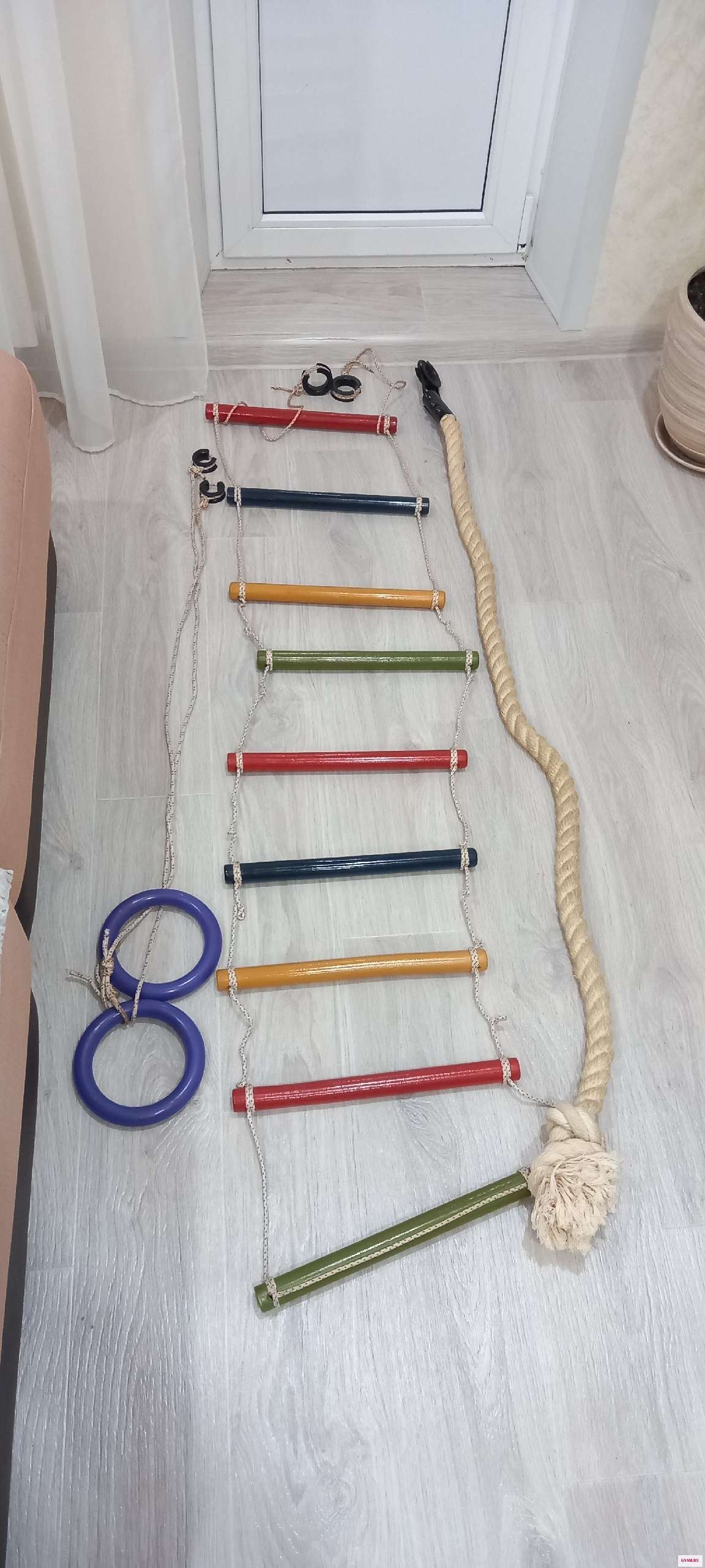 Шведская стенка( крепление-пол/потолок ) . В комплекте турник, кольца, верёвочная лестница, канат). 4500 рублей.