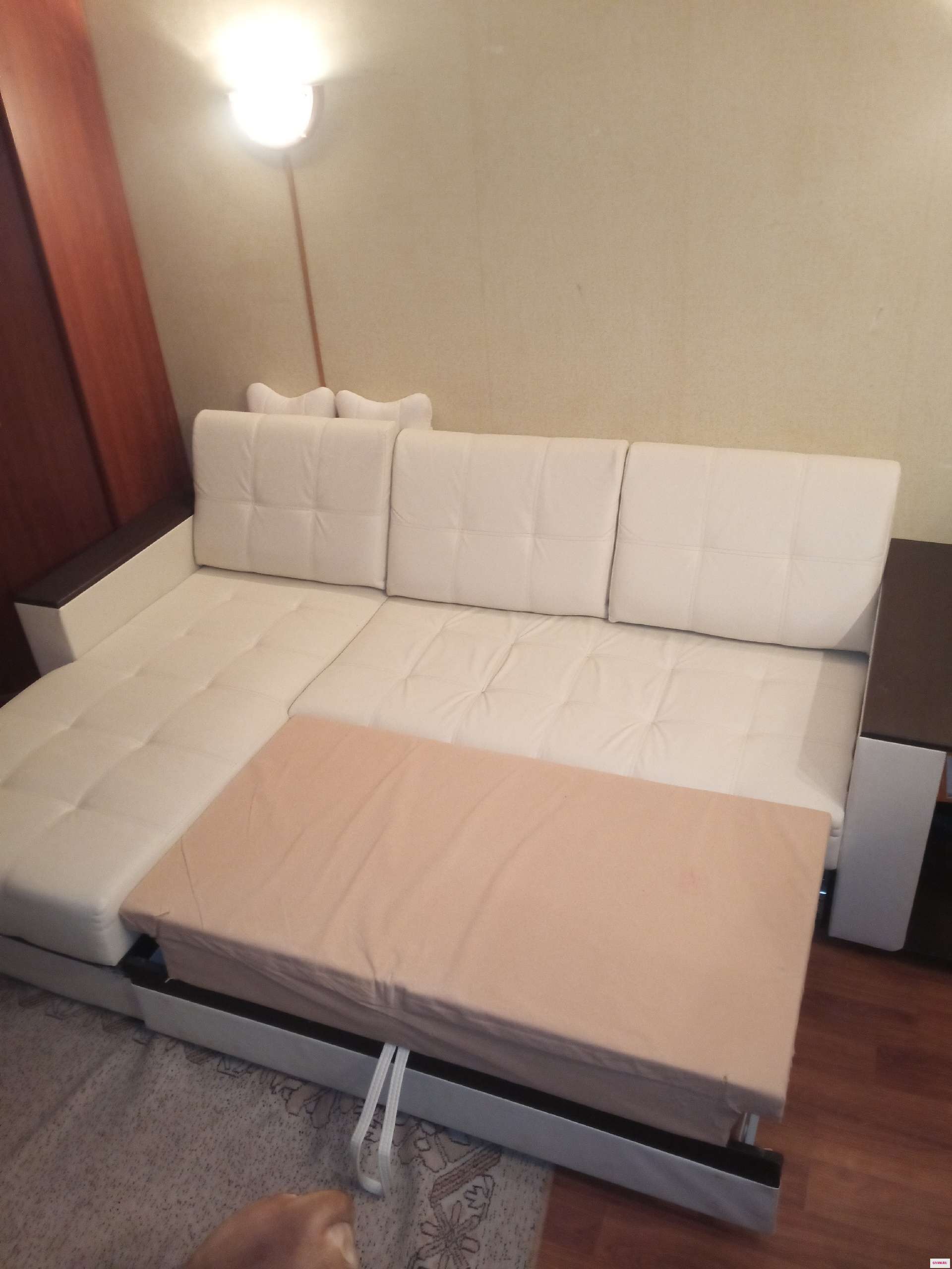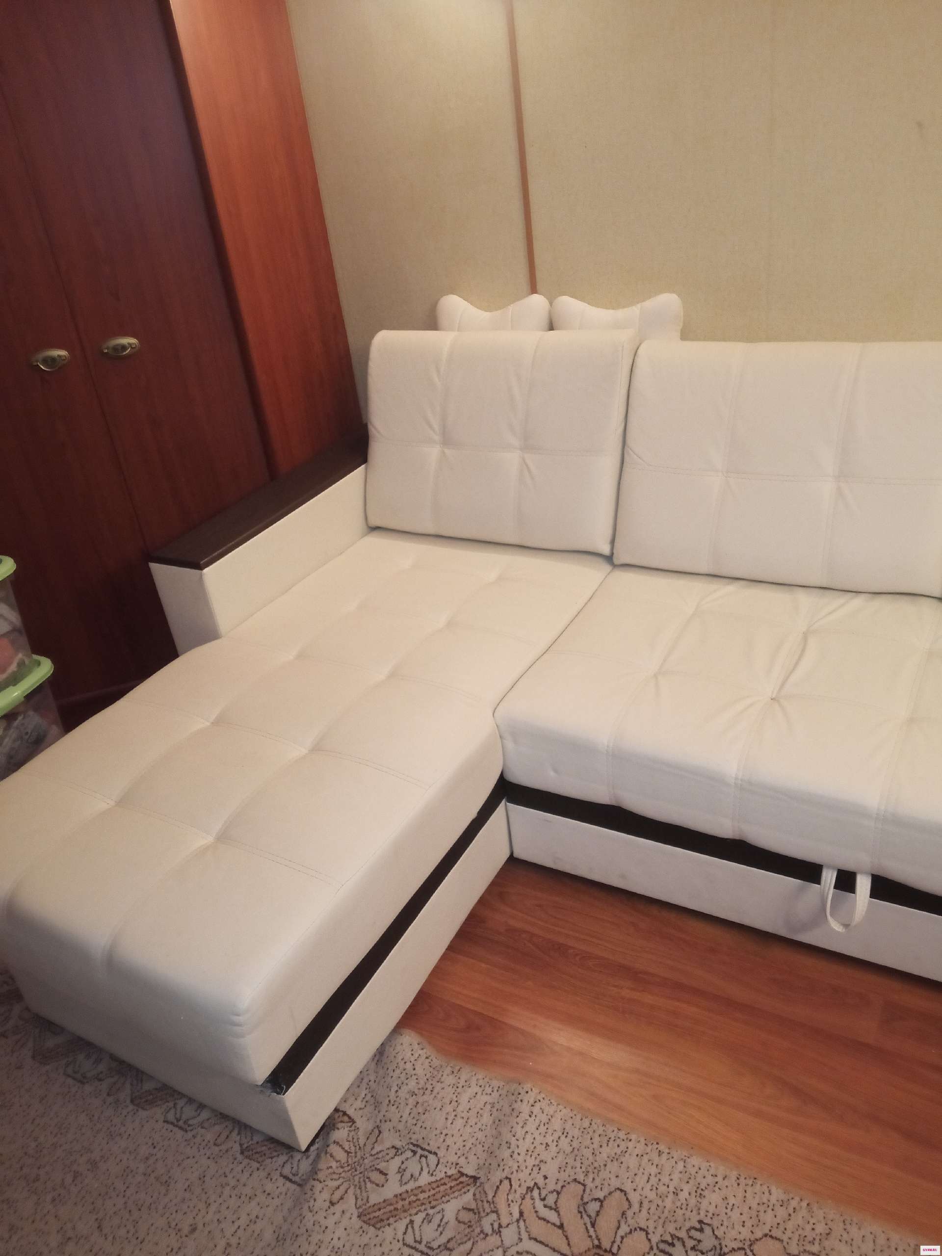 Продам угловой диван. Кожзам. Светлый беж. Есть небольшие потëртости. Самовывоз. Цена 4300.