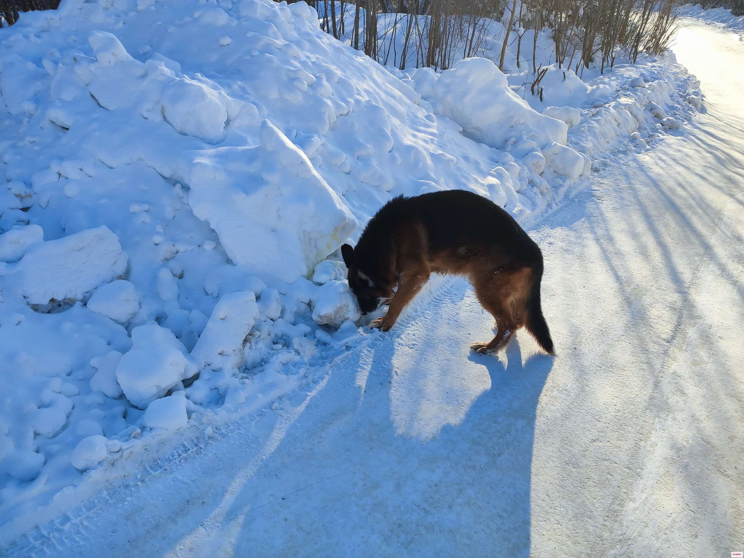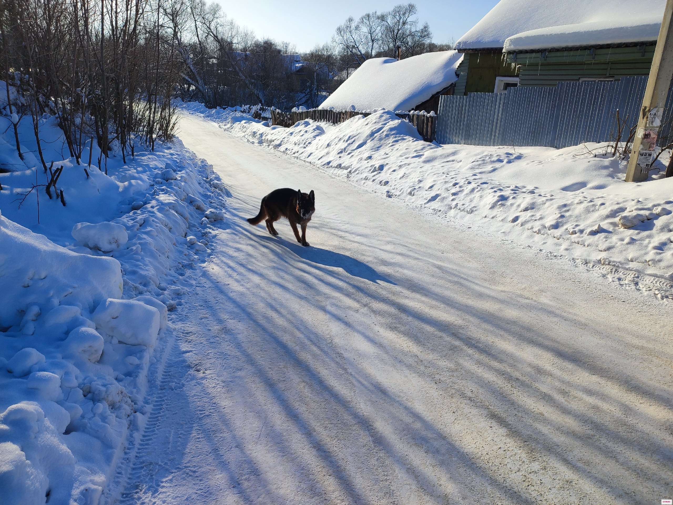 Доброва дня всем, не у кого не убежала немецкая овчарка бегает напуганный, ищет куда ему идти на данный момент находится в районе ул. Октябрьской и Чехова, к себе звал не походит боится.