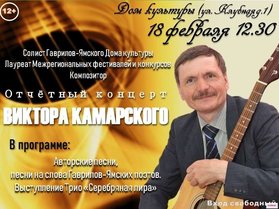 Приглашаем настоящих ценителей авторской песни и живой музыки на концерт Виктора Камарского.