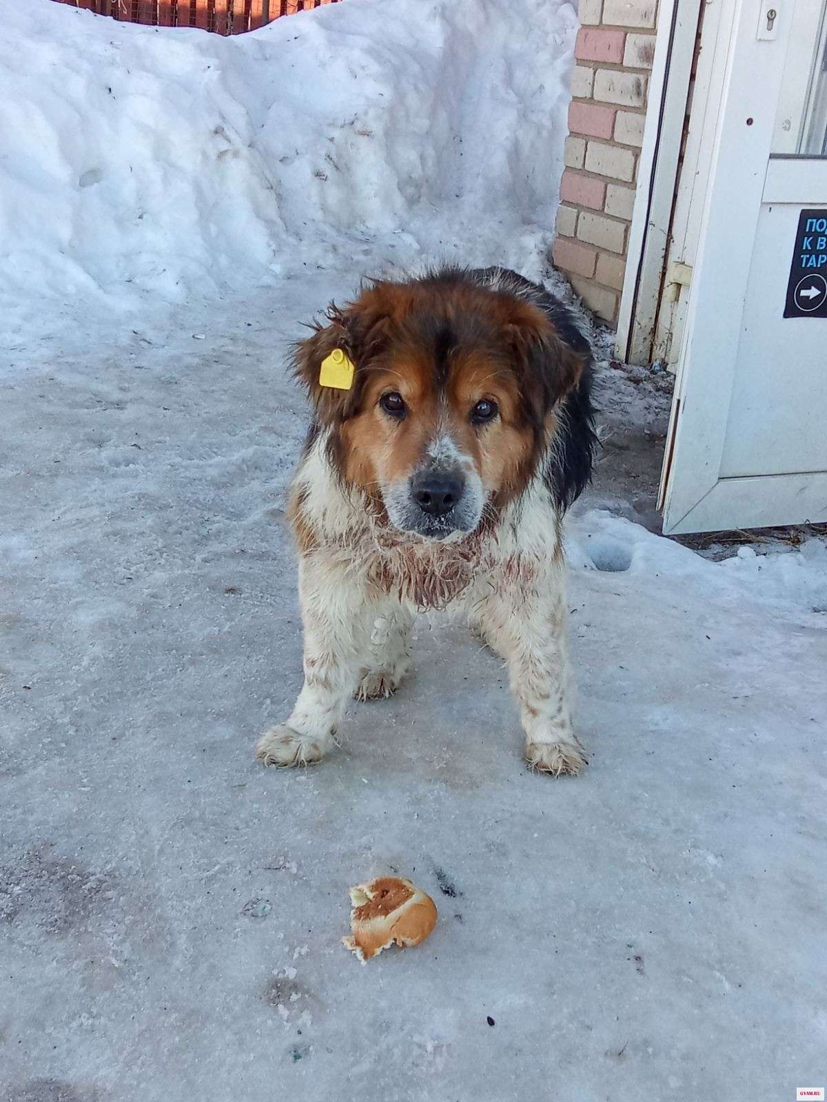 В ухе жёлтая бирка. Обитает около магазина на улице Чернышевского. Её подкармливают. Очень добрая, ест с руки. Нужен ветеринар, рана на шее и груди.