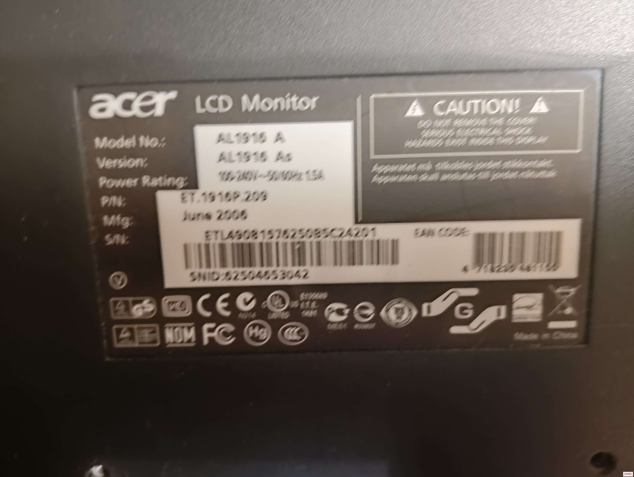 Продам монитор aser al1916A на запчас...