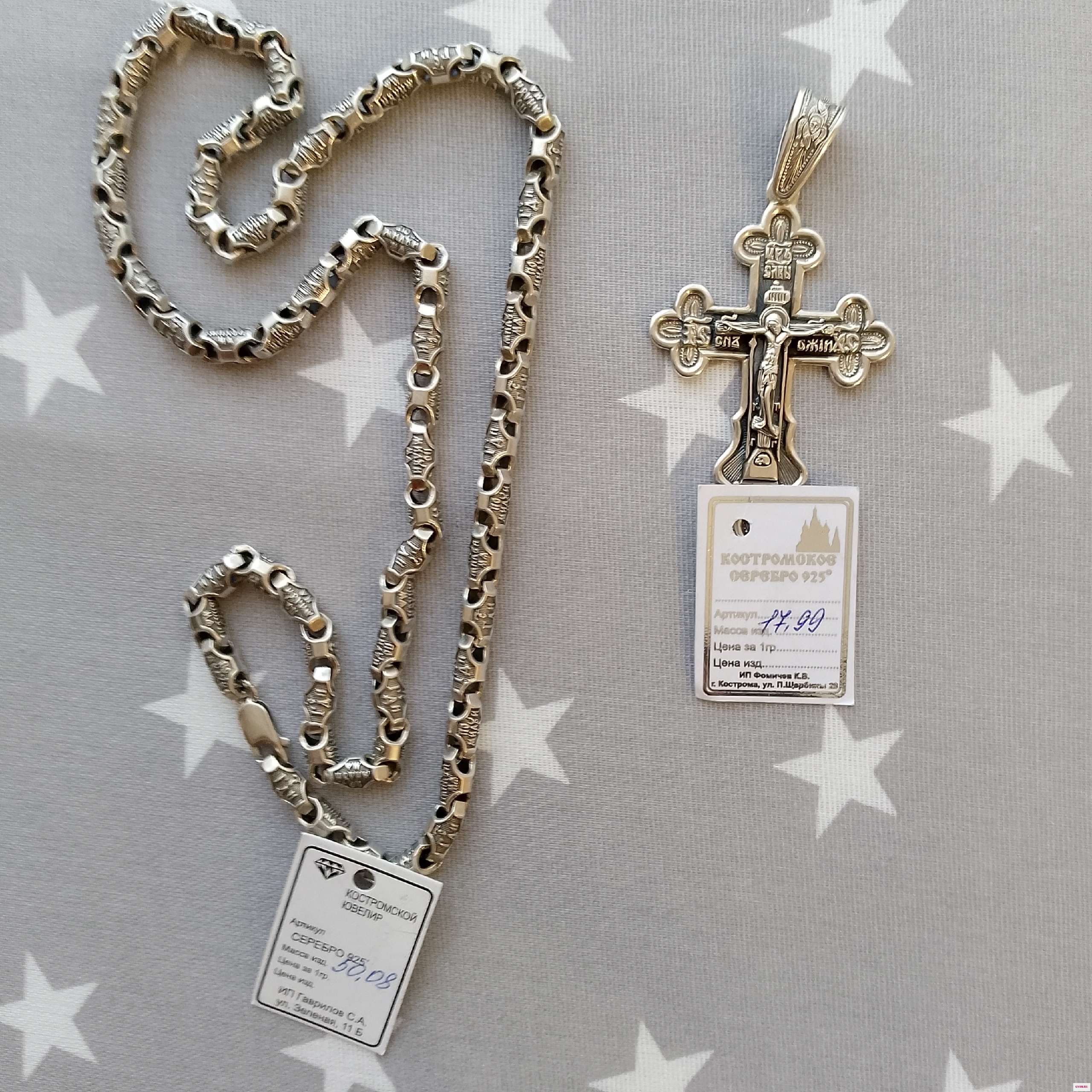 Продается цепочка серебряная с крестиком. цепочка ручной работы делали на заказ. на каждом звене слова из молитвы. Длина 65. Ширина5. Вес50. Крестик длина 5см. все с бирками и пробой освещено. Цена за комплект 15000. небольшой торг.