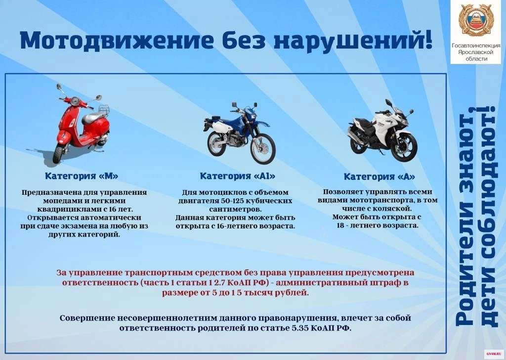 С начала апреля текущего года на территории Гаврилов-Ямского района зарегистрировано 4 административных правонарушения с участием несовершеннолетних, управляющих мототранспортом, не имея права управления транспортными средствами.