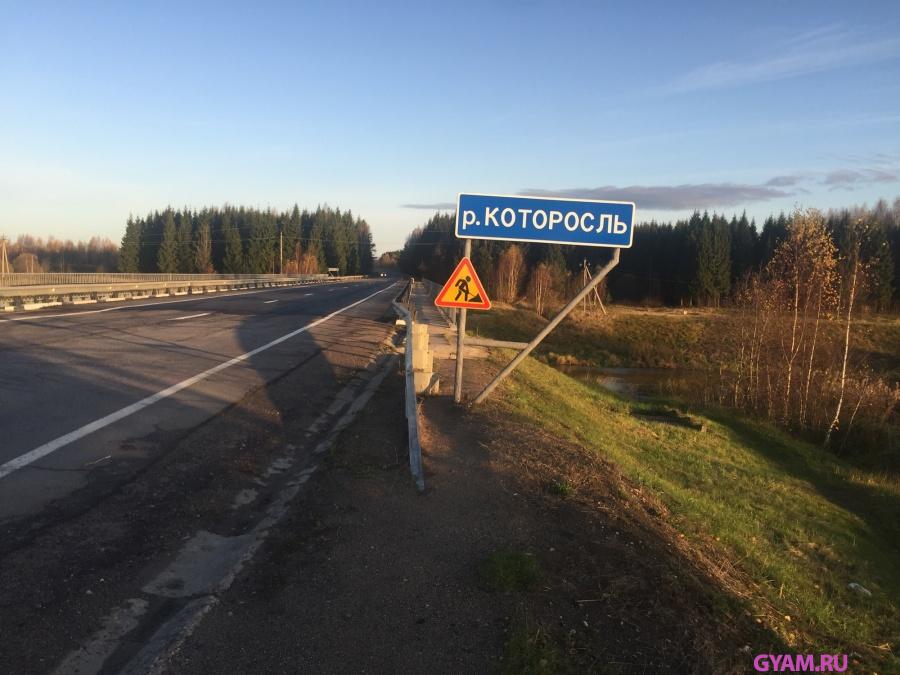 Переходя мост,по пешеходной дорожке, упёрся в знак р.Которосль, вариантов 2, либо перелезать через